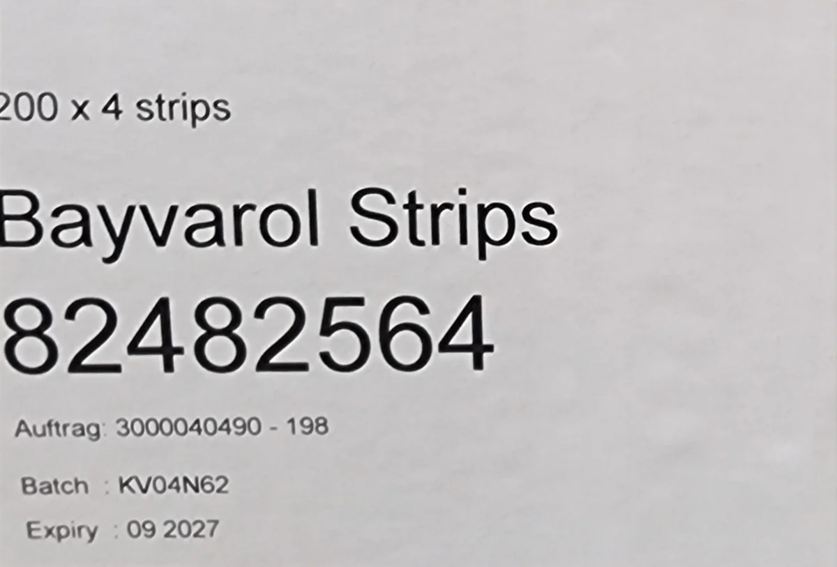 The specific mite activity on Bayvarol Strips ensures that the honey bees are reliably cleared of Varroa infection with an extremely low dose: One strip contains only 3.6mg active substance.